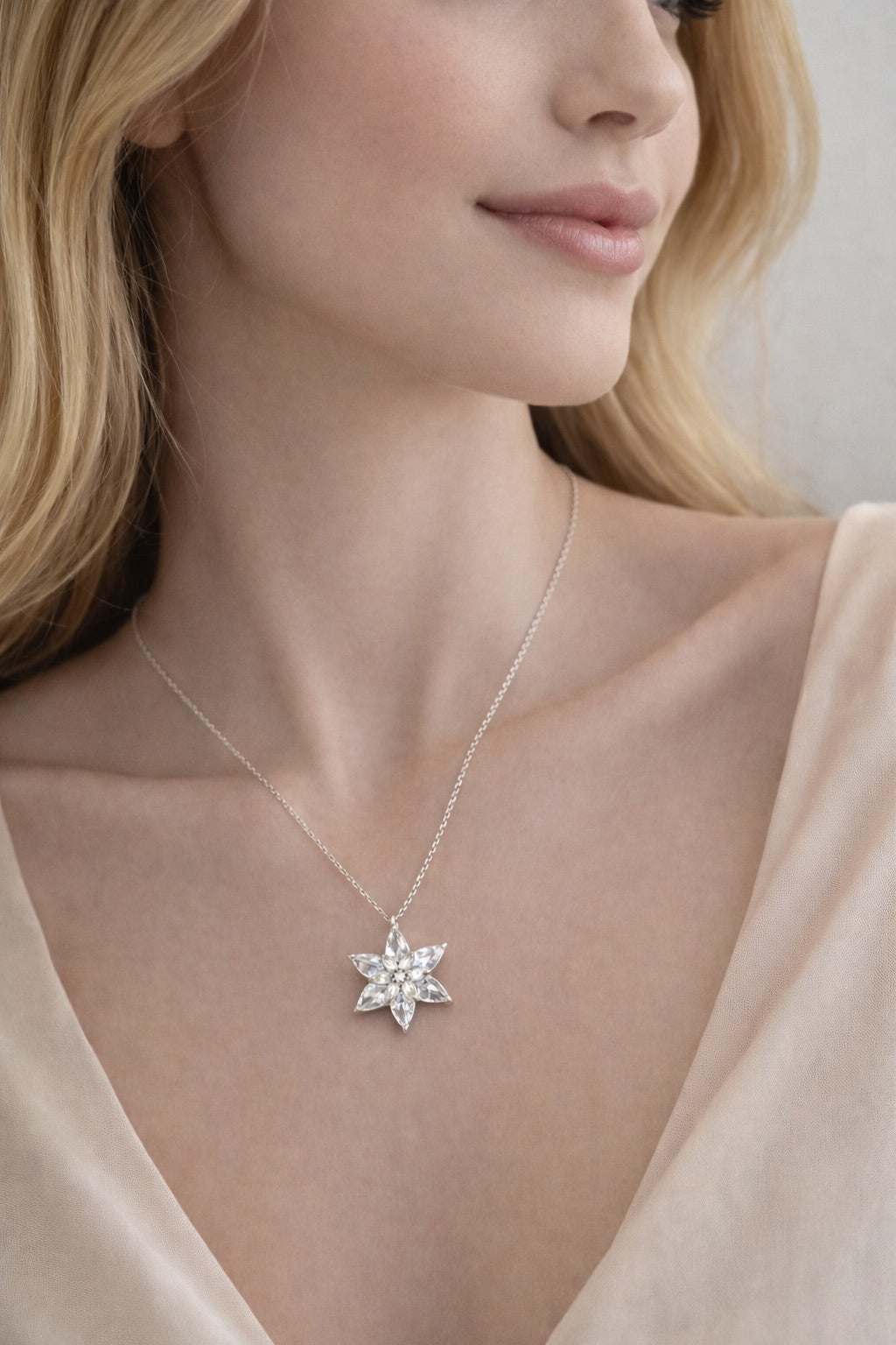 925 Ayar Gümüş Beyaz Taşlı Lotus Çiçeği Kolye – Saflığın ve Zarafetin Simgesi